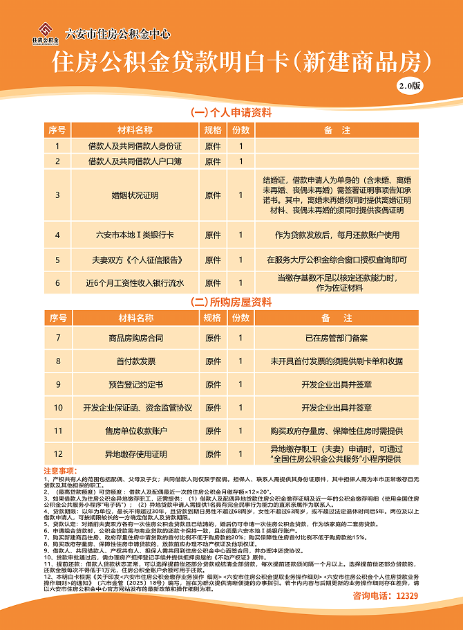 六安市住房公积金贷款明白卡(新建商品房)