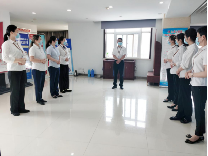 为巩固服务综合礼仪培训成果,提升窗口职工优质服务意识,市直管理部开展了服务综合礼仪培训周活动,利用每日晨会进行岗位礼仪练兵。