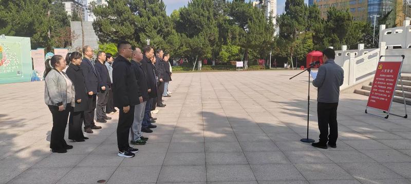 革命烈士纪念碑前,当雄壮激昂的国歌声响起,全体人员队列整齐,神情肃穆,国歌声闭,全场肃立默哀。伴随《献花曲》响起,两名党员代表缓步向前,向革命烈士敬献花篮,中心党组书记、主任鹿翌元上前仔细整理花篮缎带。随后,全体党员高举右拳,重温入党誓词,铿锵誓言回望初心使命。最后,大家缓步有序瞻仰烈士纪念碑,并向烈士英名墙敬献鲜花,对革命先烈寄托无限哀思和崇高敬意。